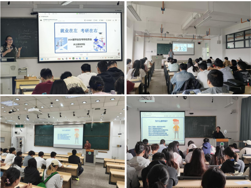 9月24日至29日,304永利集团陆续召开了6场分专业考研动员会。公司副经理赵洋毅、副经理李伟,地图学与地理信息系统系主任王艳霞,以及班主任程清平、张绍云、苏小娟等教师分别面向水土保持与荒漠化防治、地理科学、地理信息科学、土地资源管理、自然地理与资源环境,以及农业资源与环境专业的2026届毕业生开展考研动员和备考指导。