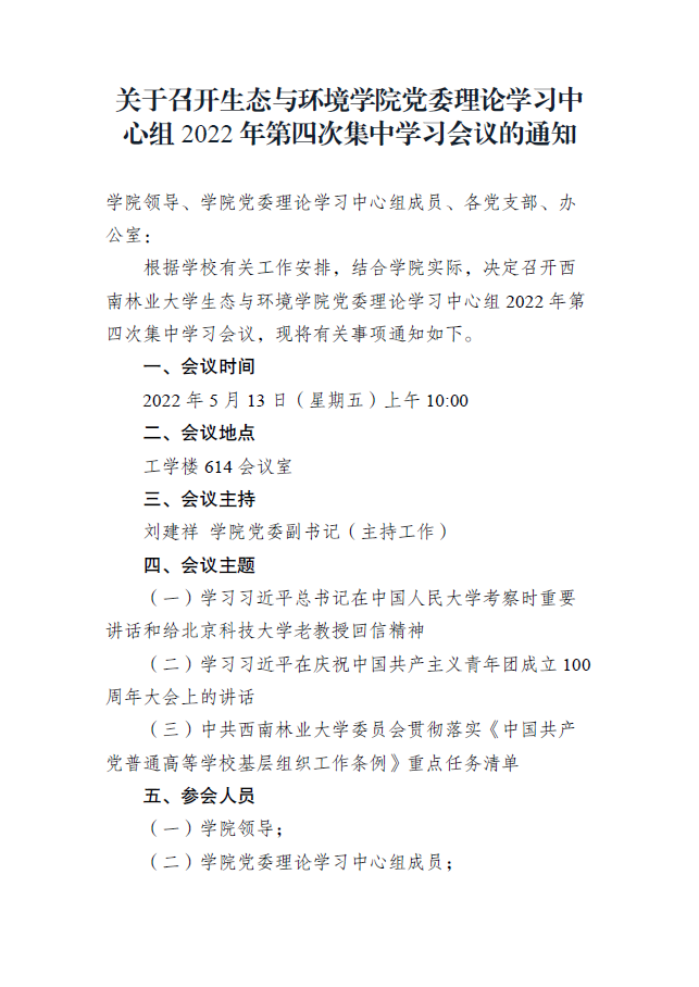 关于召开生态与环境公司党委理论学习中心组2022年第四次集中学习会议的通知