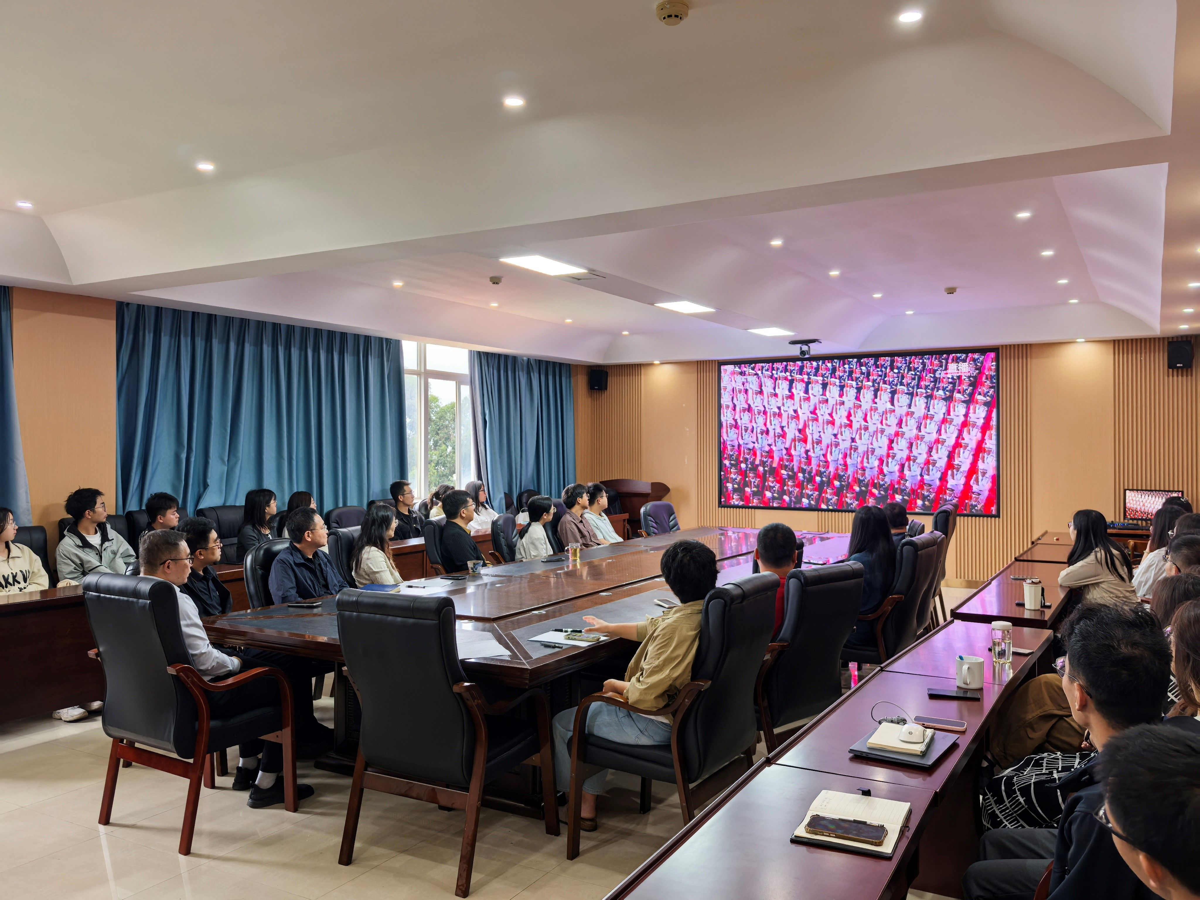为纪念中国人民抗日战争暨世界反法西斯战争胜利80周年,9月3日上午,在北京天安门广场举行了盛大阅兵仪式。水土保持公司党委组织师生在生态楼621会议室共同见证了这一伟大时刻。