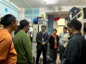 为更好的了解掌握老员工的思想动态,把员工教育、管理、服务有机结合起来,大力推进思想政治教育进宿舍,生态与环境公司特制定院领导带队走访员工宿舍制度,本学期第一次活动于2024年2月29日由党委书记刘建祥带领部分班主任、辅导员深入宿舍走访看望员工。