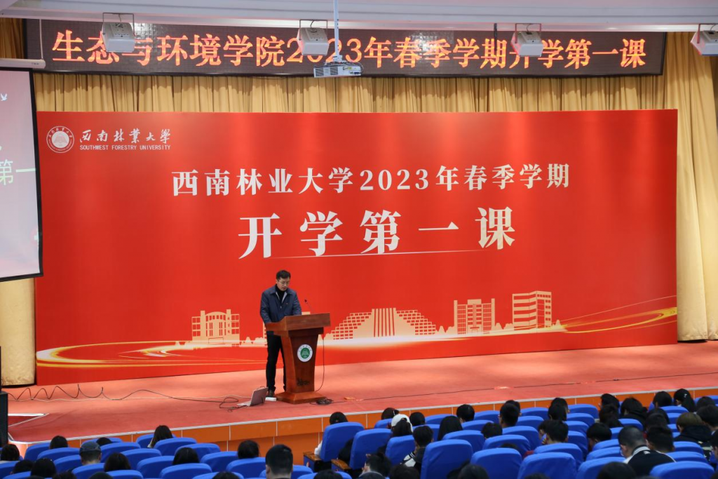 2月28日,生态与环境公司在第一图书馆大报告厅开展2023年春季学期开学第一课”活动。生态与环境公司党委书记刘建祥主讲400余名师生代表参加。