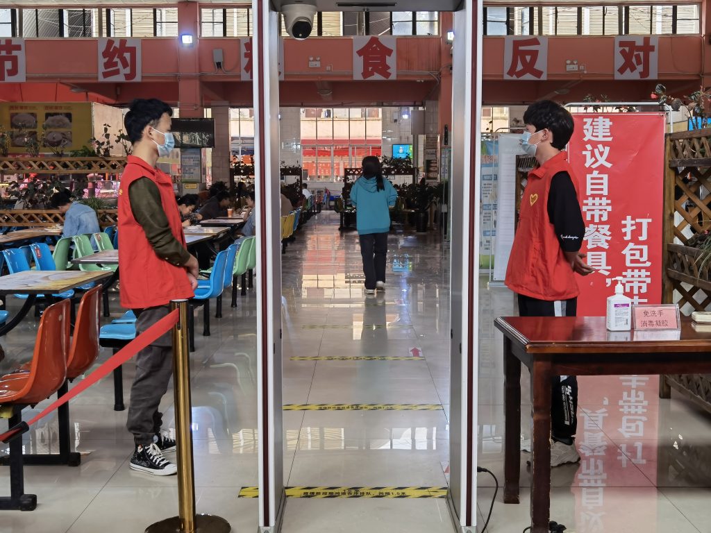 疫情面前显真情,助人为乐暖人心。2022年4月11日起,生态与环境公司开始在校内各个食堂设立值班点,推进校园疫情防控常态化,宣传好人好事以及奉献精神,维持食堂用餐秩序。志愿者们穿上执勤服、戴上口罩,投入到推进疫情防控常态化的工作中,他们分布在食堂的各个门口,坚守在自己的岗位上,有条不紊地进行工作,提醒进出的同学佩戴好口罩,测量体温,为校园疫情防控工作贡献出自己的力量。为营造健康安全的校园环境,公司还在公共场所的门口准备了酒精、免洗洗手液、测枪等防疫物资。工作人员还会每日对校园宿舍、教室、厕所等公共区域进行全面消杀,做到全面消毒、不留死角。