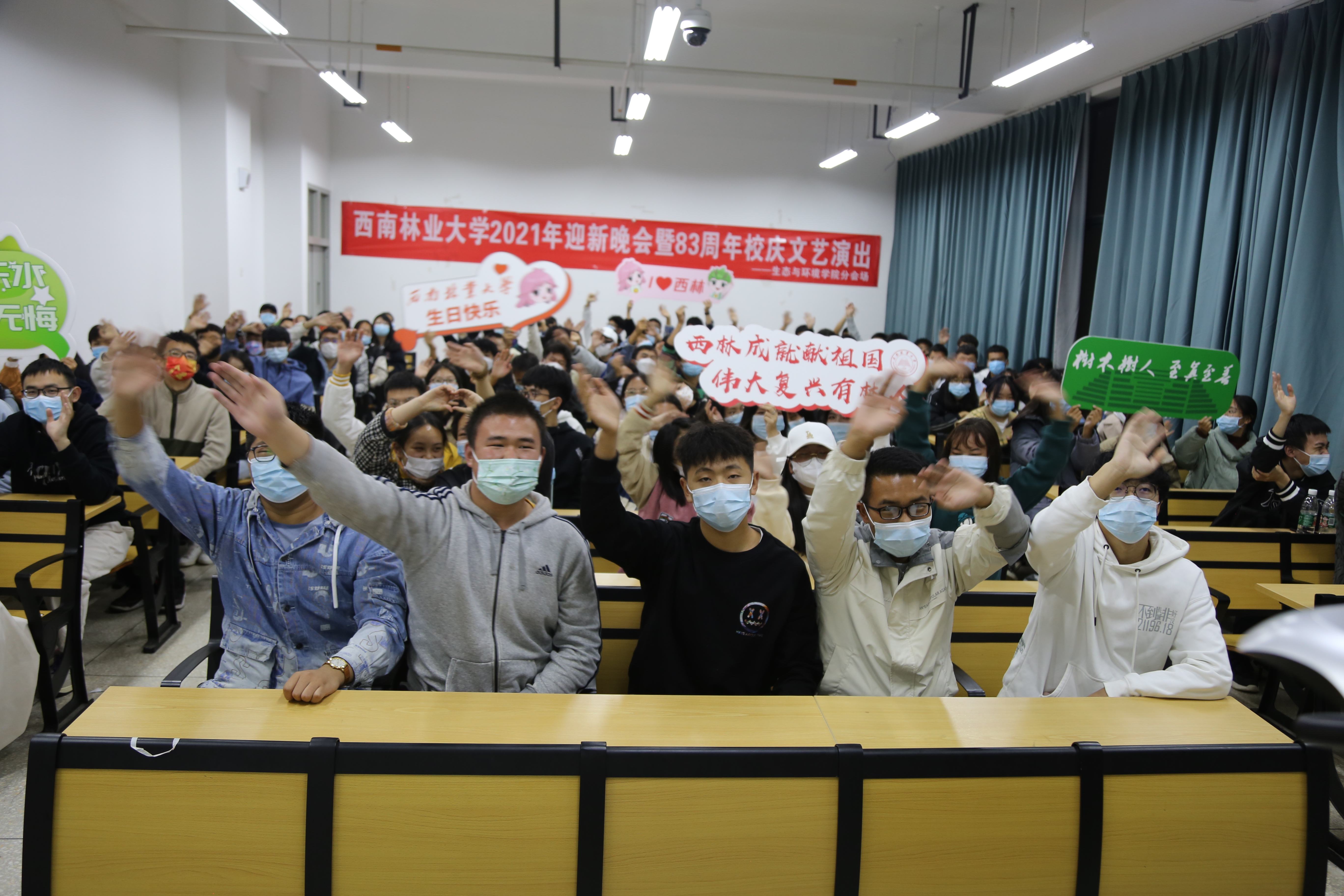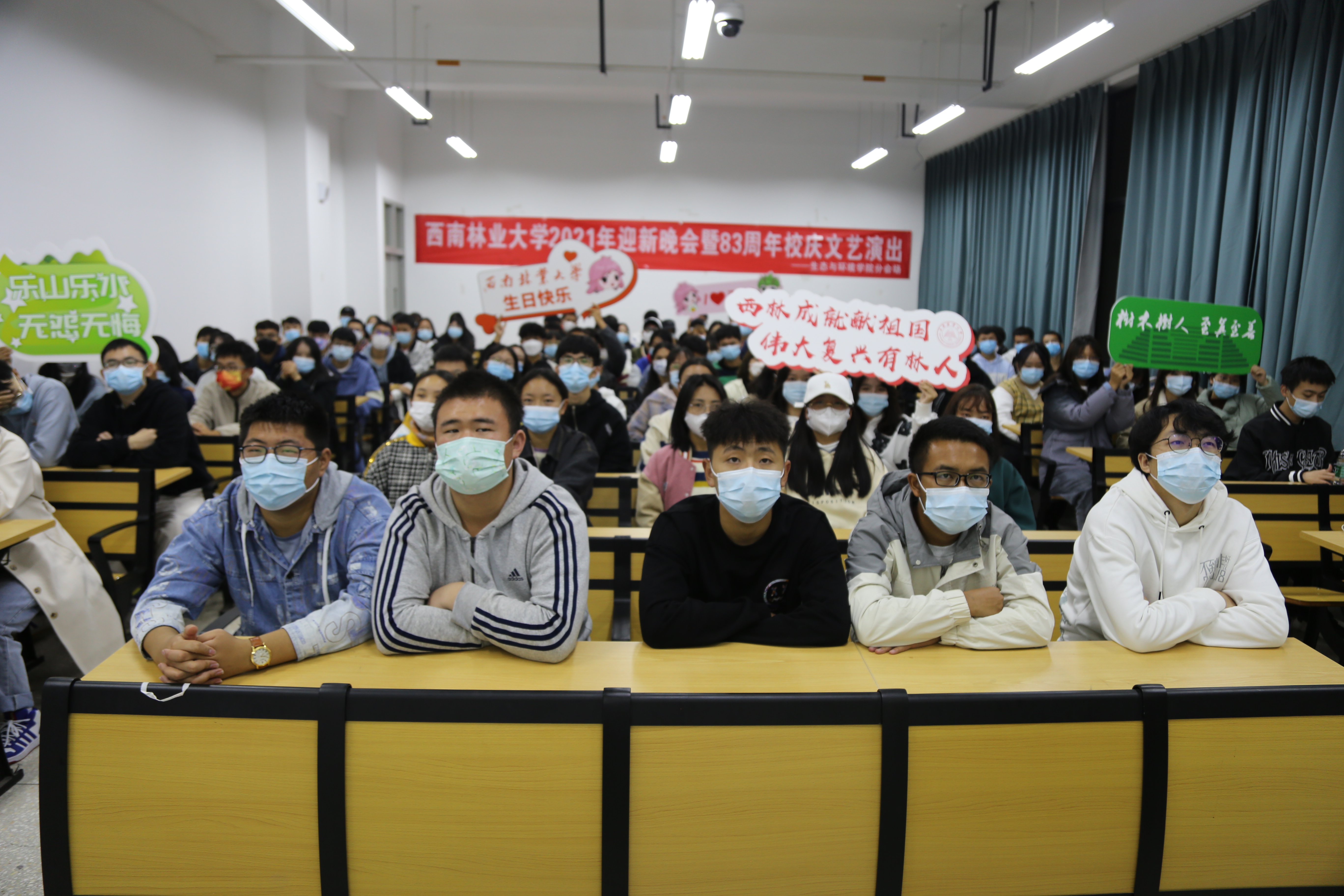 在这个举校相庆的日子里,公司于10月22日晚上7点举办“西林成就献祖国、伟大复兴有林人——2021年迎新晚会暨建校83周年校庆文艺演出”,生态与环境公司组织新生观看晚会直播。