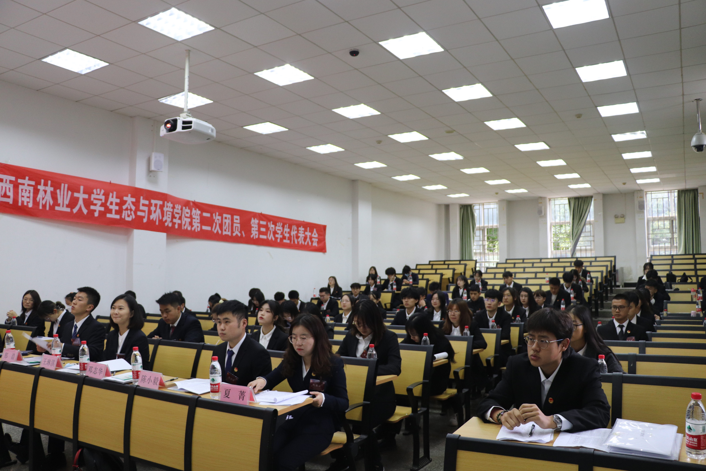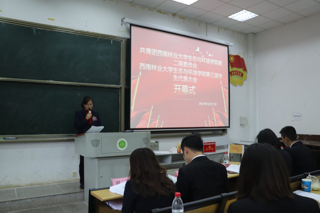 2021年10月17日,共青团西南林业老员工态与环境公司第二届委员会暨第三届员工委员会在G103多媒体教室隆重开幕。生态与环境公司党委副书记邓志华、院团委书记夏菁、公司辅导员陈小毅、王琳淇、校员工会代表郑浩同学以及团学代表共七十人出席了此次会议。本次大会由院团委书记夏菁老师主持。
