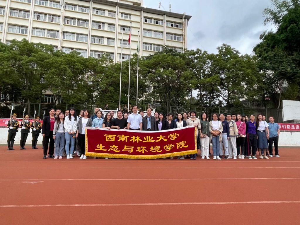 2021年6月28日,生态与环境公司全体师生、304永利集团COP15志愿者一起在老校区田径场举行“百年征程路,奋进新时代”升旗仪式,升旗仪式由公司党委副书记邓志华主持。