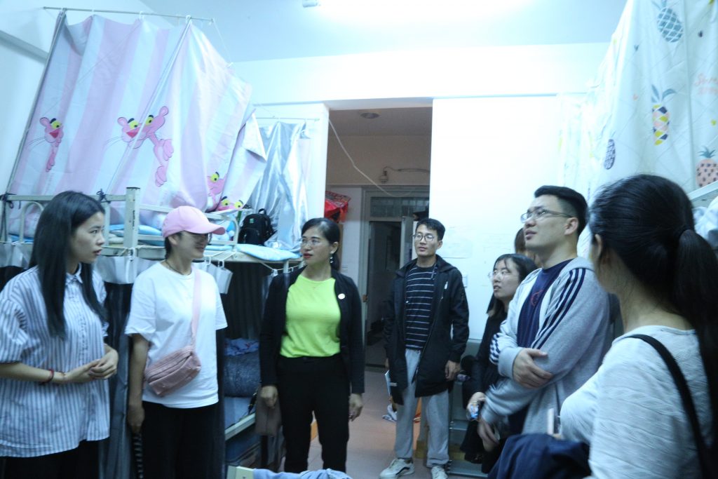在2020级专升本新生入学之际,为进一步了解公司专升本新生入住情况以及适应公司状态。9月9日晚,生态与环境公司党委副书记邓志华带领公司教师走访员工宿舍,与公司员工进行亲密交谈。