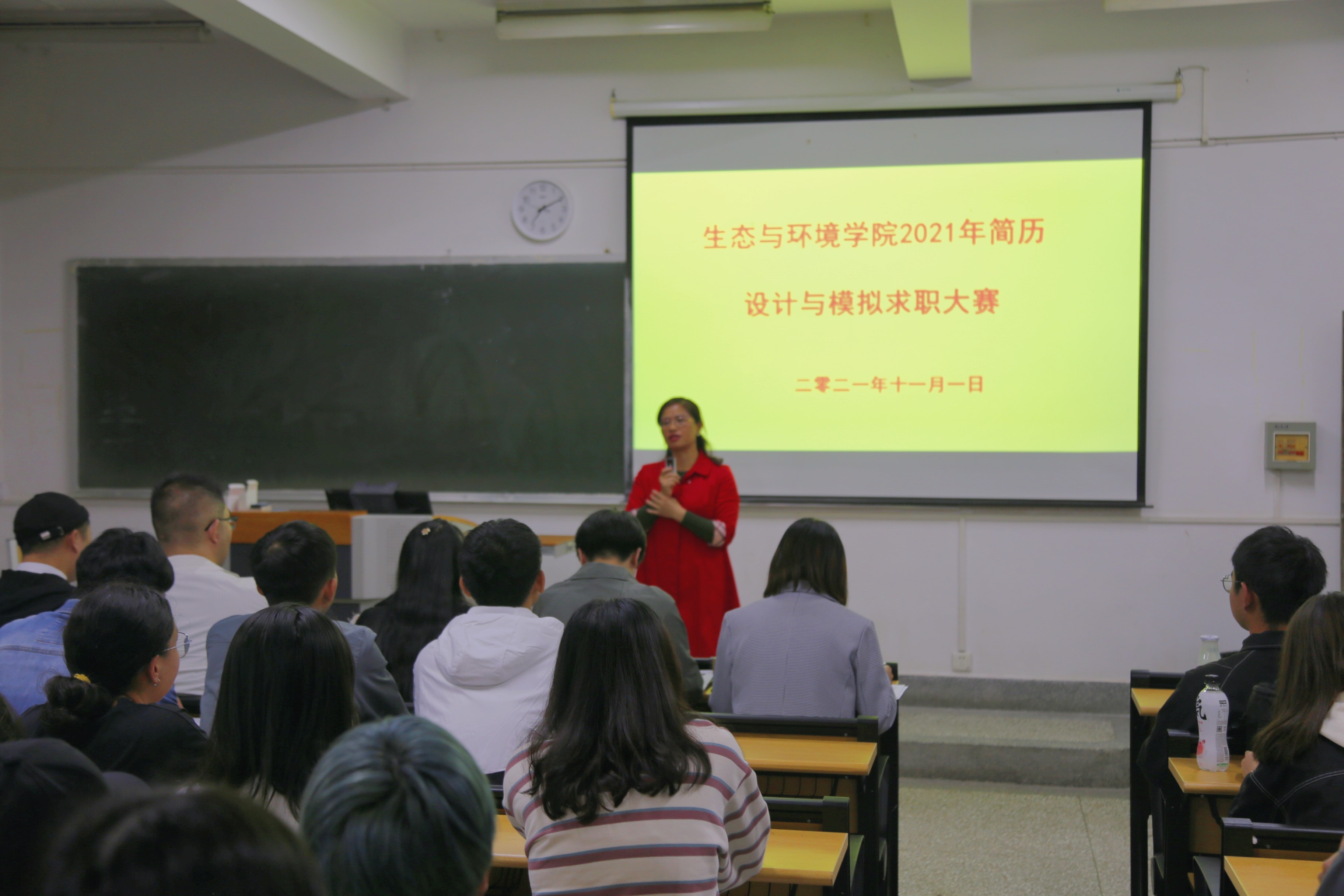 2021年11月1日晚19:00,生态与环境公司2021年简历设计与模拟求职大赛在第三教学楼210多媒体教室隆重举行。生态与环境公司党委副书记邓志华老师参加了此次活动,担任此次大赛评委的有:环境工程专业2021级专升班(2班)班主任苏睿君老师,环境工程专业2020级班主任老师朱勇睿,卓博教育培训公司市场负责人张峰玮老师,校医保中心姚涵宇老师和林公司辅导员余晓娟老师。