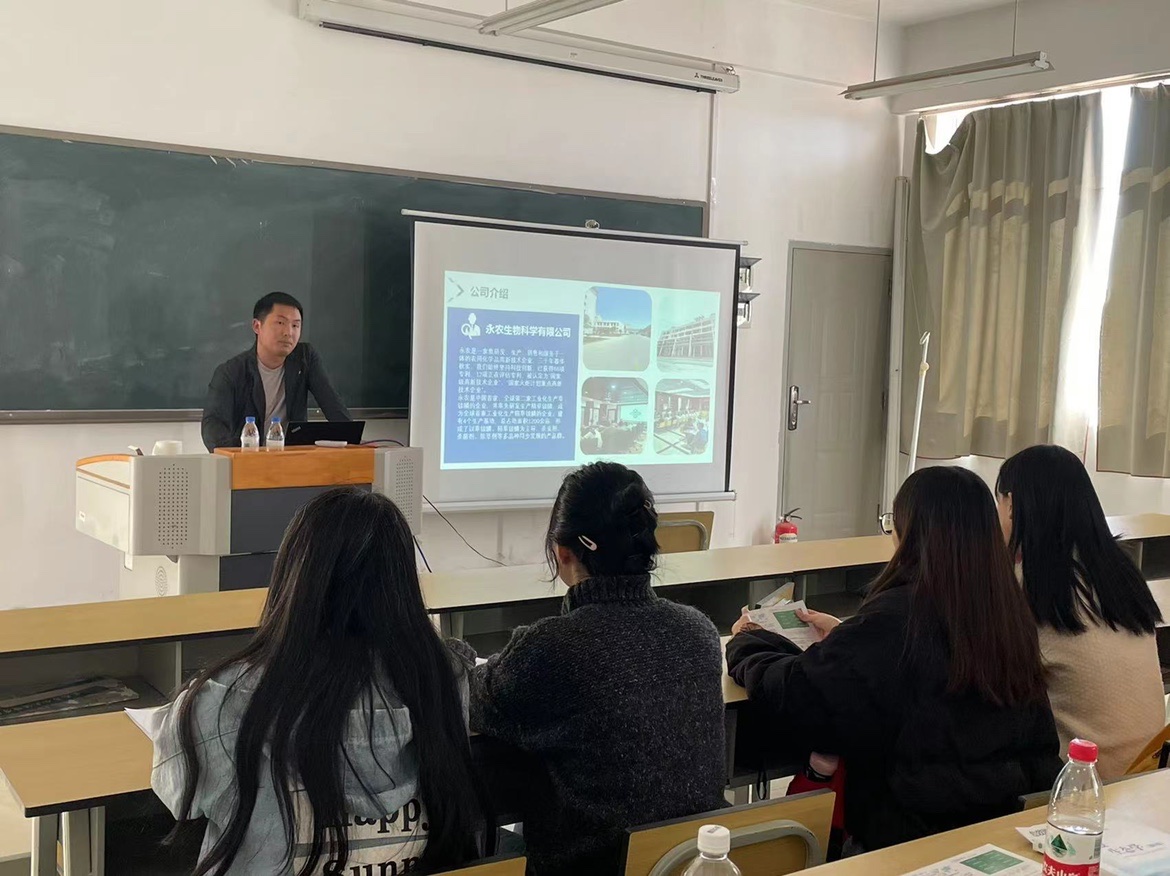 2021年11月18日下午14点半,生态与环境公司邀请永农生物科学有限公司在工学楼512召开专场招聘会。生态与环境公司农业资源与环境、生态学、水土保持与荒漠化防治等专业员工参加了本次招聘会。