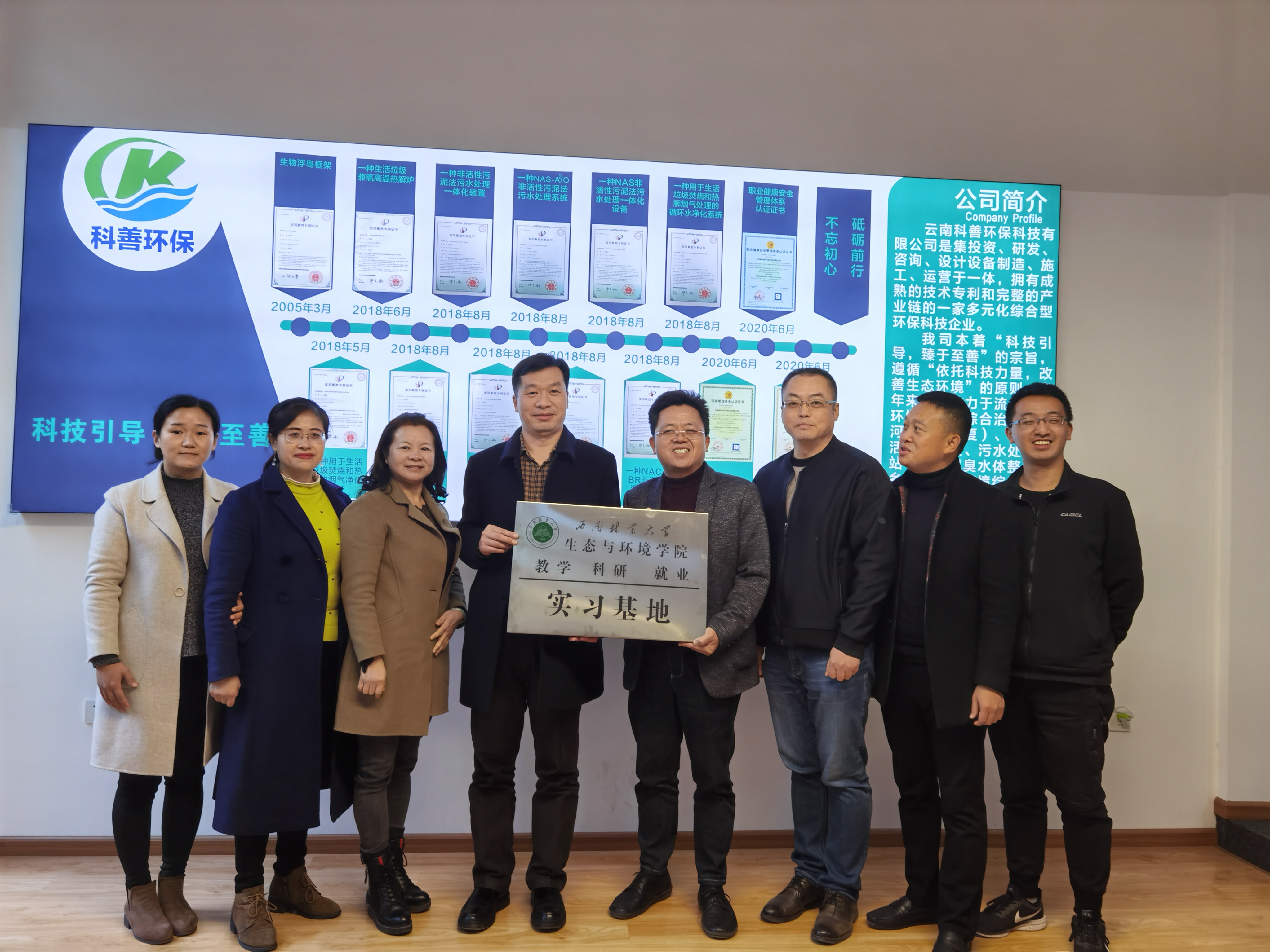 2020年12月11日,生态与环境公司党委负责人刘建祥、党委副书记邓志华,教师李小英、就业联络人杨益琼一行人到云南科善环保科技有限公司走访参观并举行校企合作暨共建教学科研就业创业实习基地签约仪式并挂牌。
