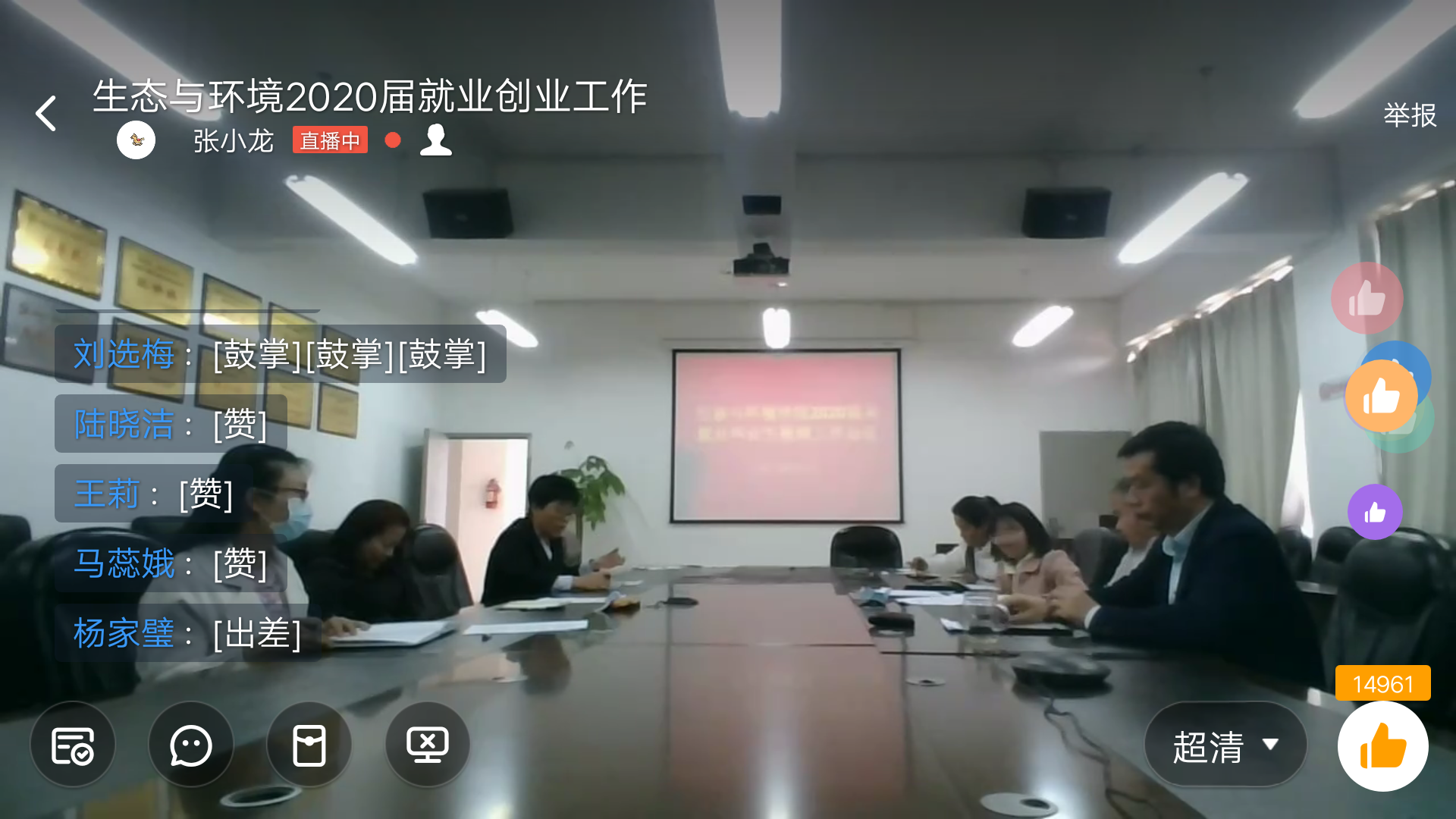 随后,就业联络人杨益琼对近期毕业生派遣、档案转接、研究生复试、毕业离校等相关工作进行讲解。团委书记夏菁、组织员张小龙分别对对团组织关系、党员组织关系转接作解释说明。并在线对同学们的问题一一解答。