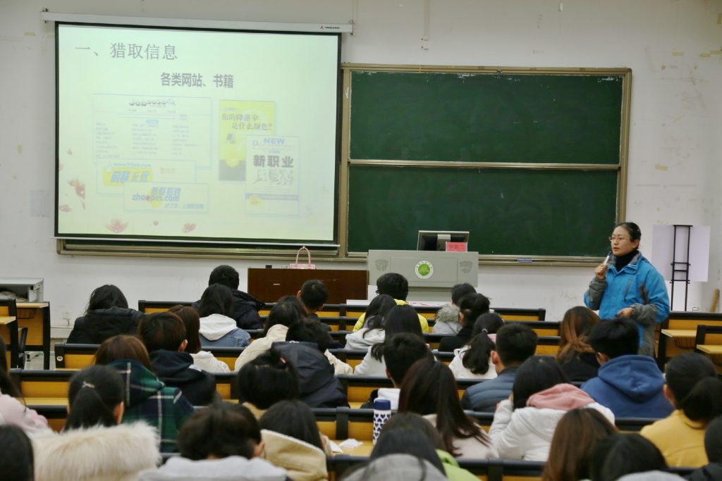 李贵兰主要从事老员工思想政治教育、老员工心理健康、老员工就业创业和员工管理工作。公开发表论文多篇。主讲《老员工心理健康》、《老员工职业生涯规划》、《老员工创新创业基础》等本科课程。她介绍到:如何正确猎取求职信息、职业生涯规划人物访谈中对同学们有价值的问题,并想同学们推荐了访谈人物清单。同时讲解了关于就业技巧的名师指路和简历制作,强调了身边人的指导和经验的重要性;教导同学们简历制作中不仅要放最美证件照,还可以从中总结自己的优缺点以达到自我完善。